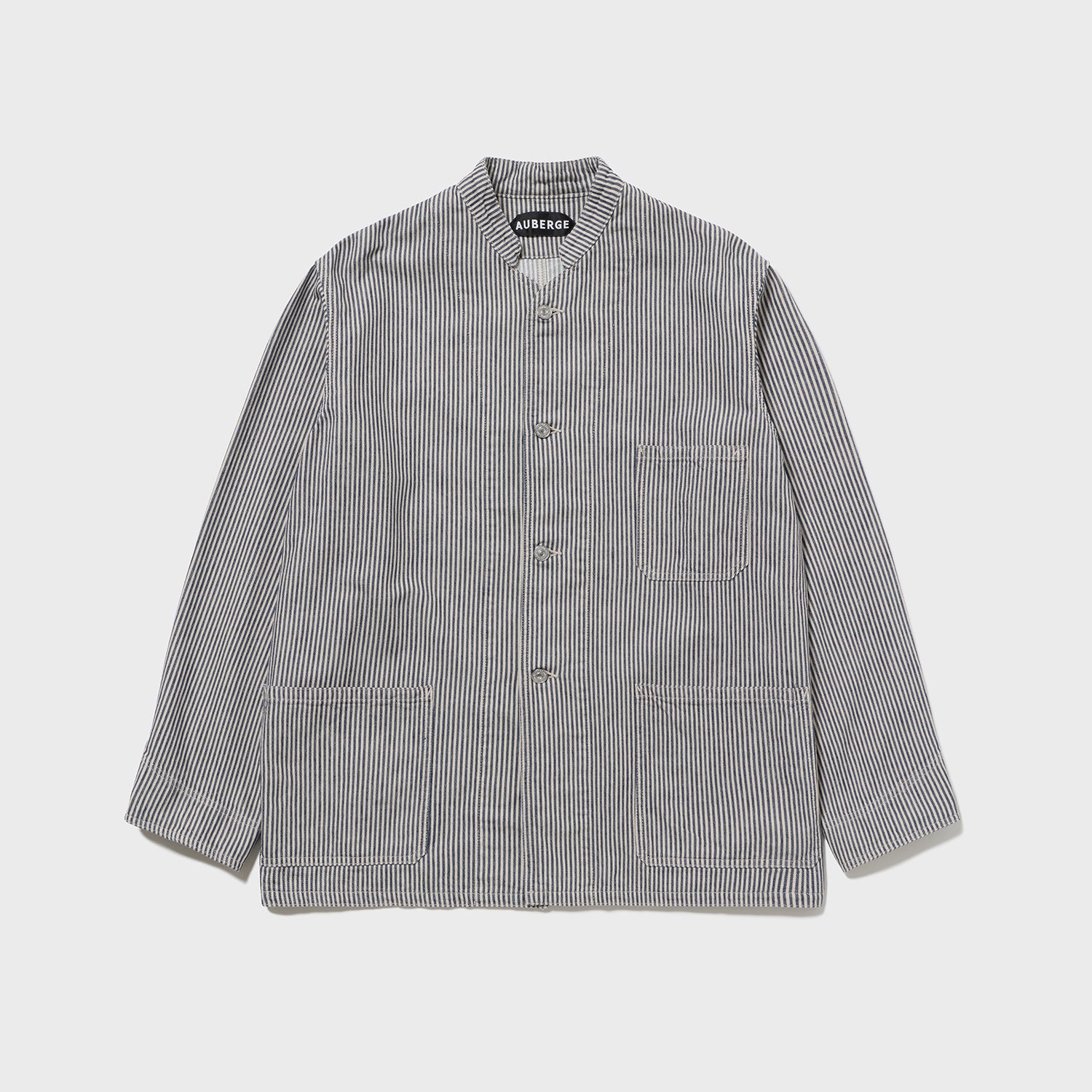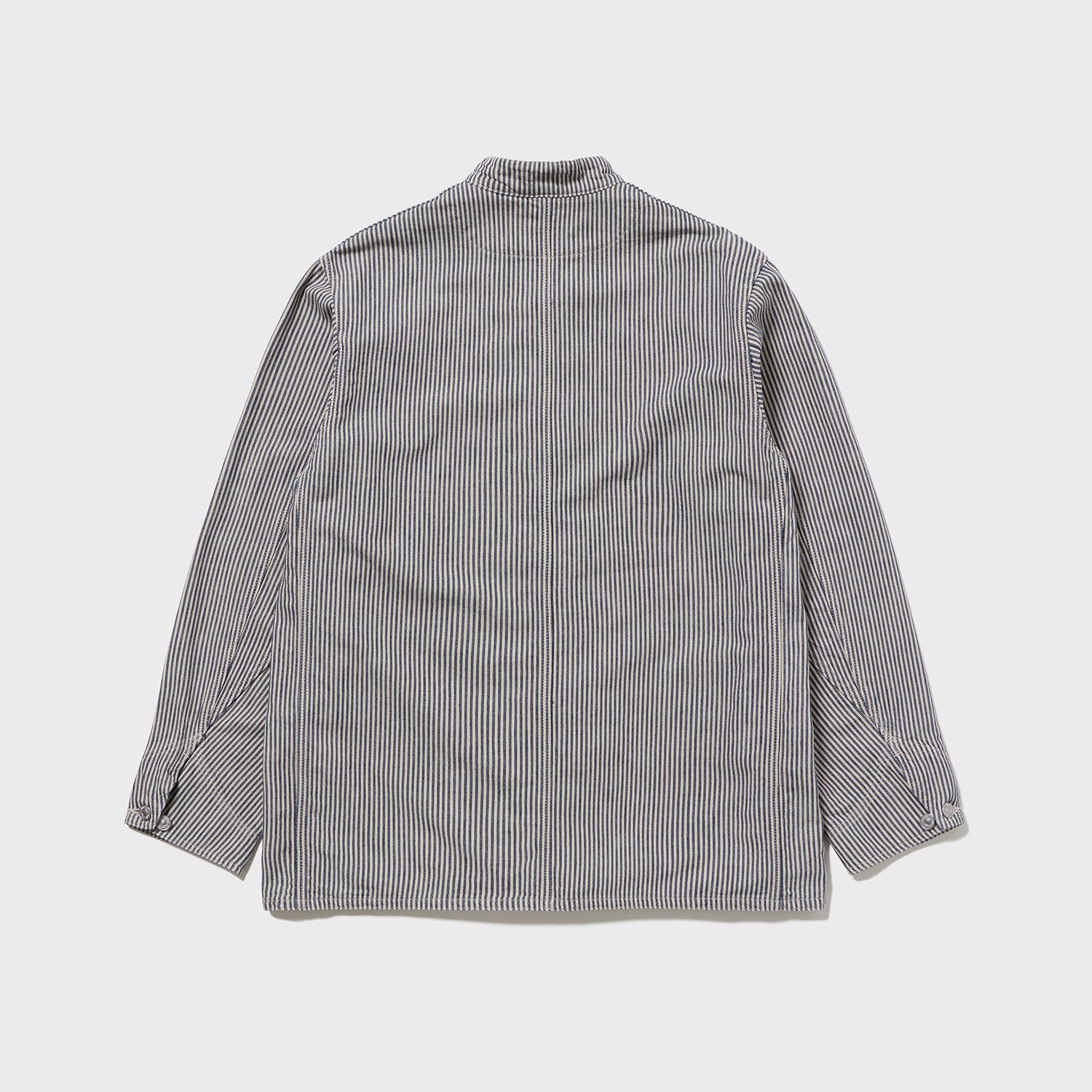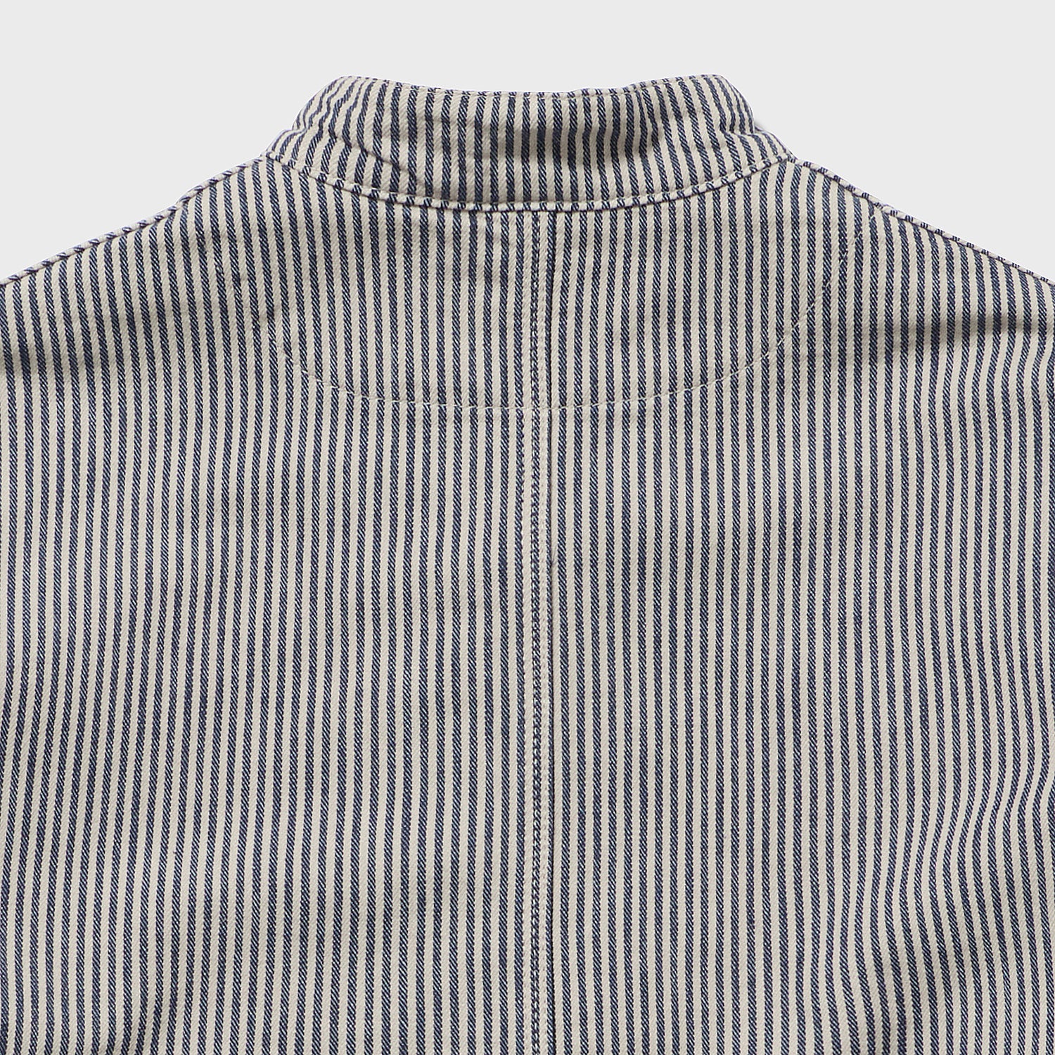 スタンドカラーでありながら、ややV字気味に第一ボタンの位置が下がったアメリカンワークな原型カバーオールです。