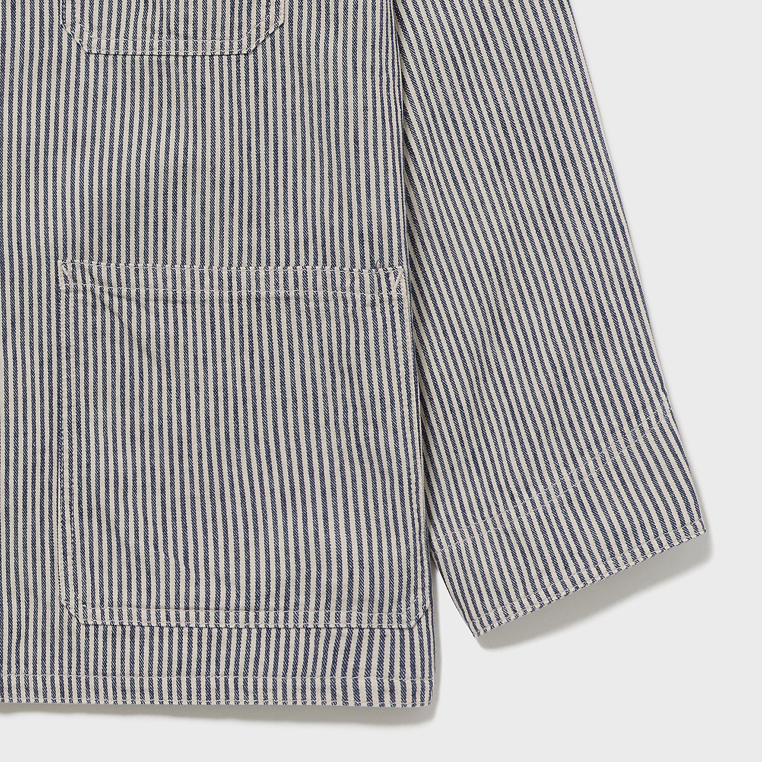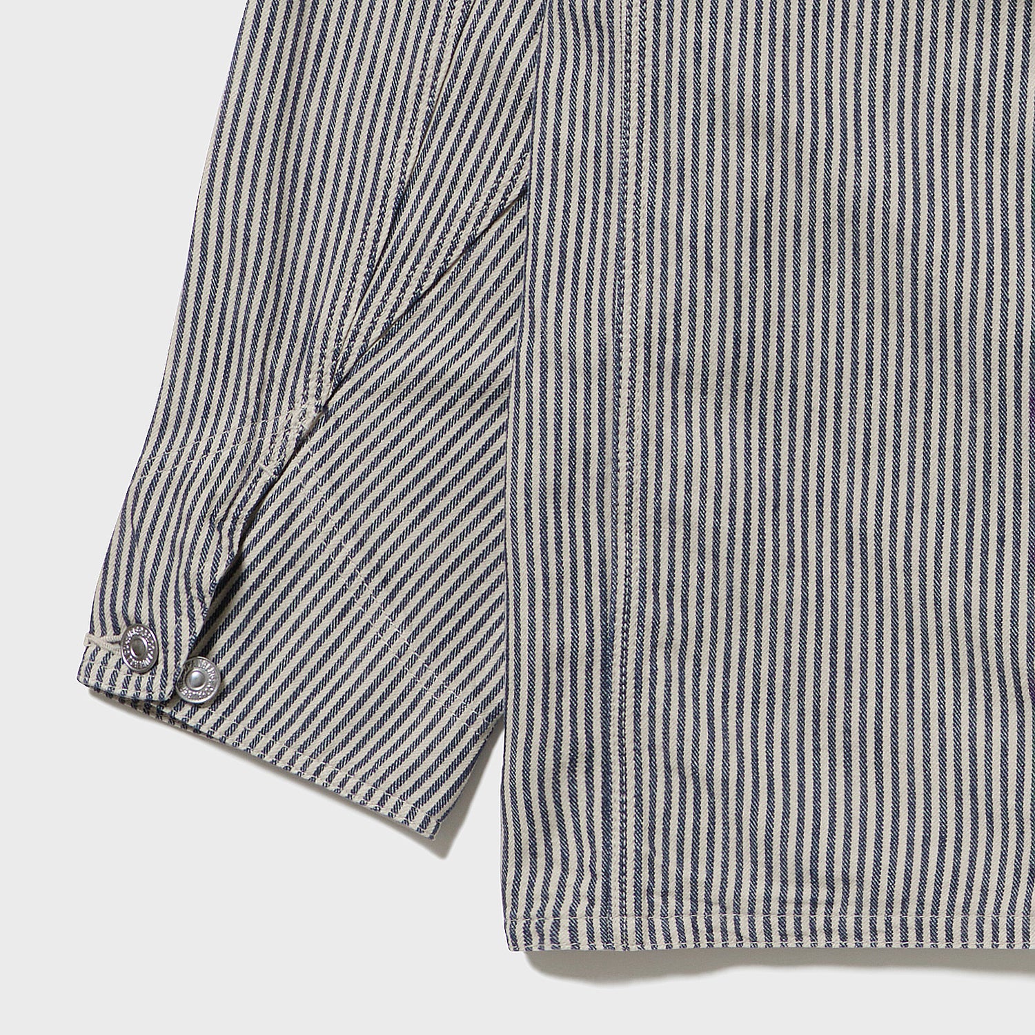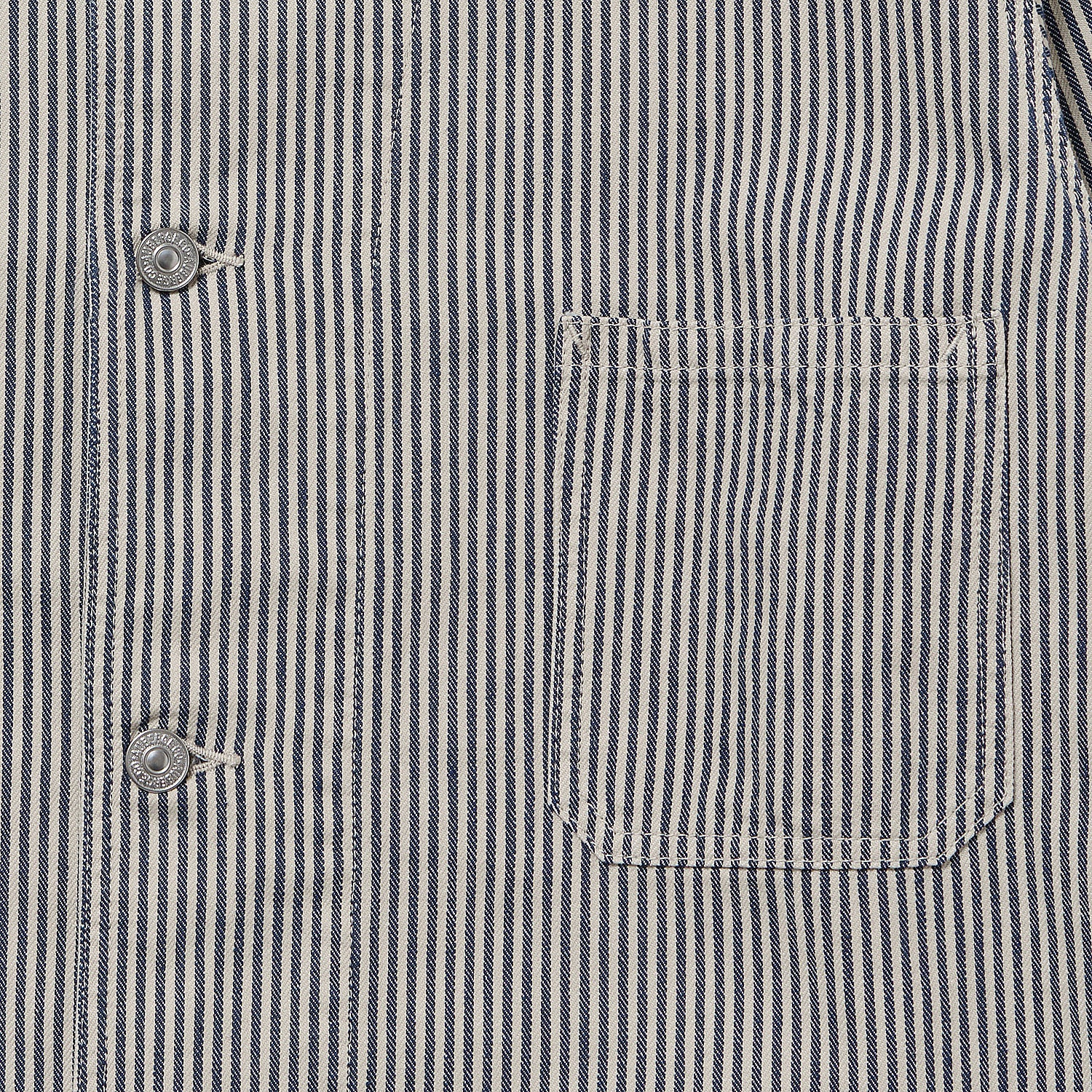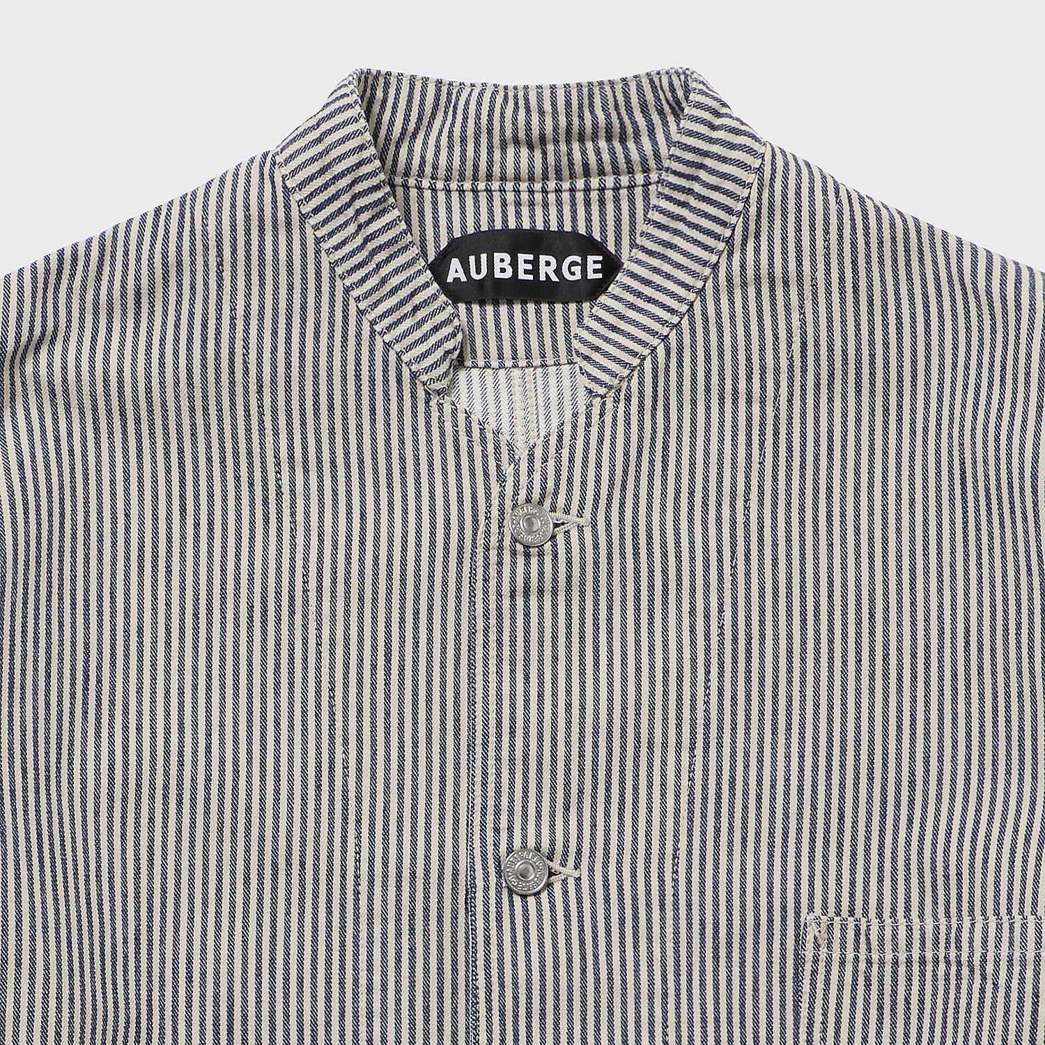 スタンドカラーでありながら、ややV字気味に第一ボタンの位置が下がったアメリカンワークな原型カバーオールです。