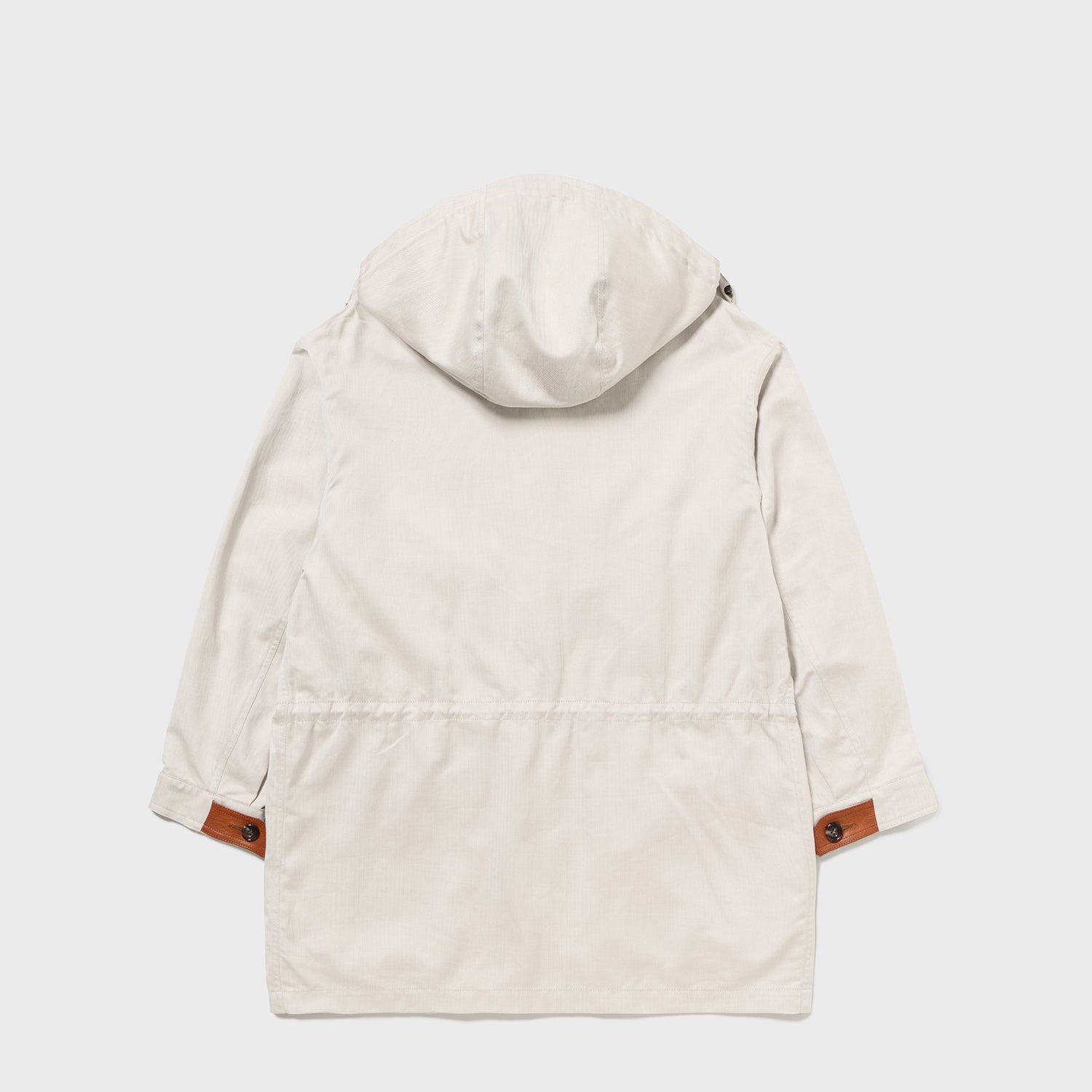 経糸は、ただでさえ毛羽が少なく光沢のある海島綿に、さらにガス焼きを施すことで至高の質感を引き出して使用。緯糸にはシルクリネンの光沢と素材感を加え、天然素材による極限の風合いを目指しました。